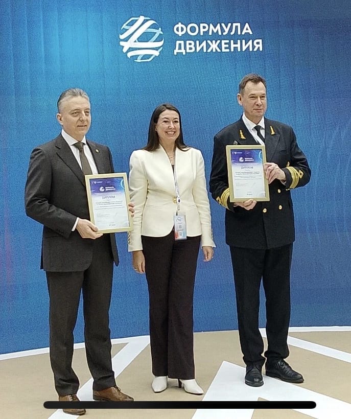 Церемония награждения прошла на стенде национальных проектов в Гостином дворе во время Транспортной недели и XIX Международного форума и выставки «Транспорт России», ежегодно проводимой в Москве. Заслуженную награду бронзового призера от коллектива проекта получили ректор ГУМРФ имени адмирала С.О. Макарова Сергей Барышников и заместитель генерального директора ООО «Эволюция морских цифровых технологий» Сергей Елизаров.